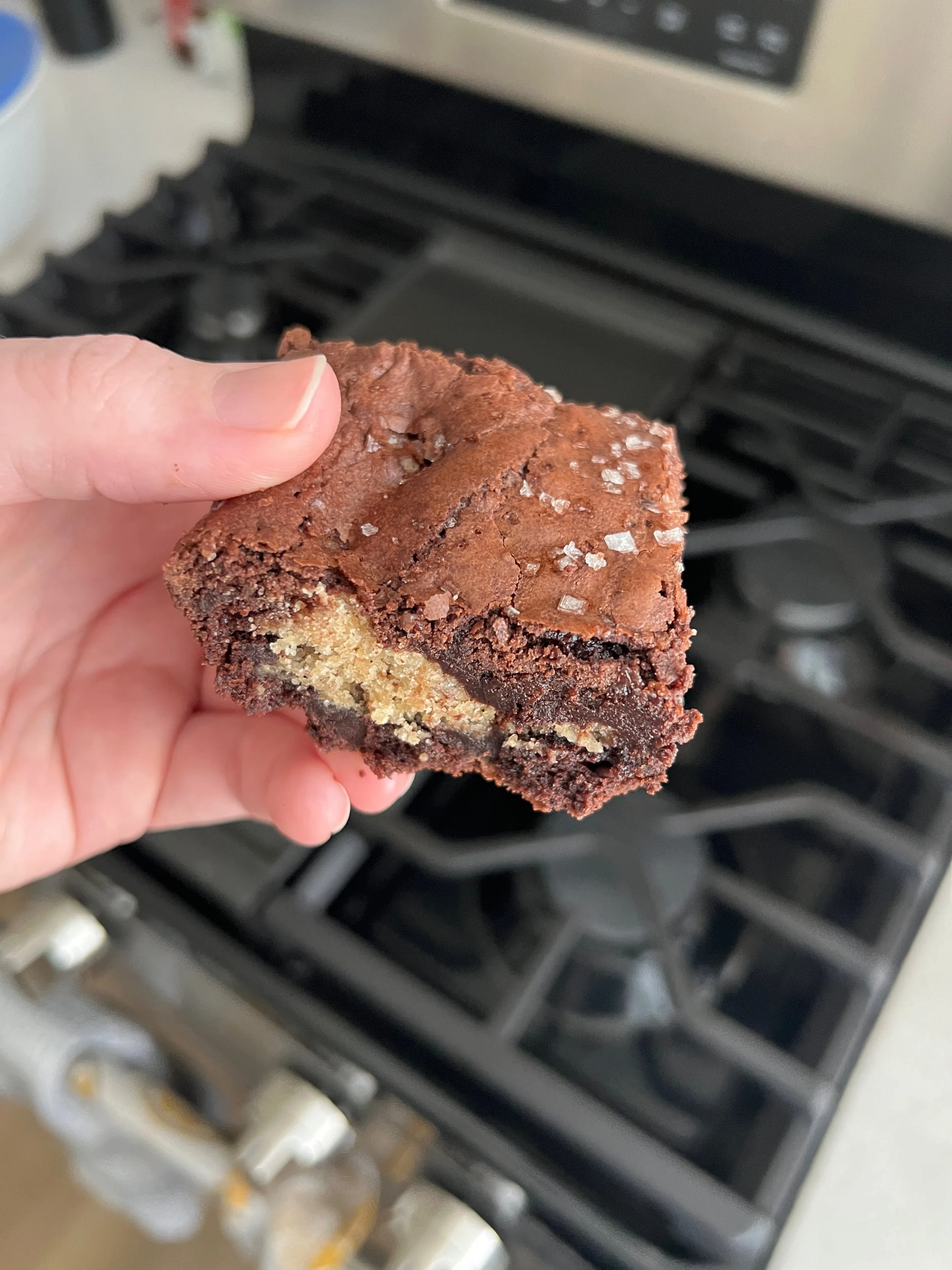 chocolate cookie, salted caramel frosting, caramel drizzle, flaky salt